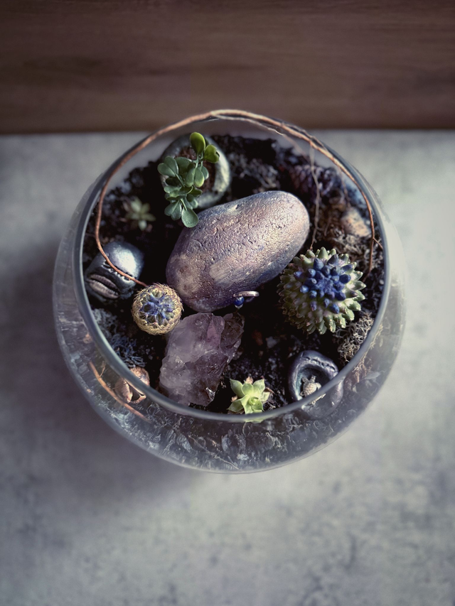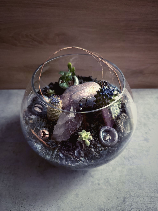 Ce beau terrarium poétique entièrement fait main dans mon atelier à Paris vous invite à l'admiration de ce paysage miniature.